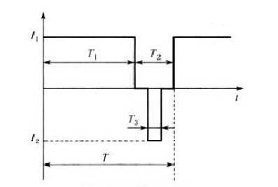 新型的直流充電樁采用快速充電法,該系統區別于傳統充電器所采用的連續電流充電和脈沖電流充電方式,采用了智能化的變脈沖充電方式,即采用下圖所示的充電電流脈沖,包括充電脈沖T1間歇脈沖T2以及放電脈沖T3。通過間歇停充,使蓄電池經化學反應產生的氧氣和氫氣有時間重新化合而被吸收掉,使下一輪的恒流充電能夠更加順利地進行,使蓄電池可以吸收更多的電量。